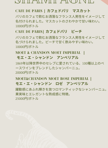 皆で楽しみたい/誰かとお祝いをしたいとき用にシャンパンメニューの用意があります!